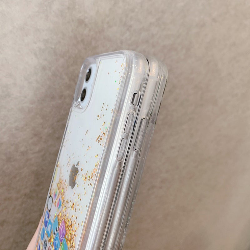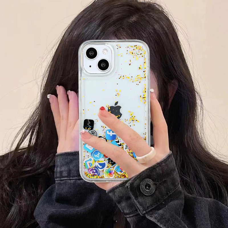 Unique Appearance Design Mobile phone case uses the current popular quicksand style, beautifully all kinds of mobile phone APP icons, as if the elements on the mobile phone screen cleverly transplanted to the mobile phone case, not only a sense of fashion full, but also show a unique personality charm, add a touch of different colours to the phone.