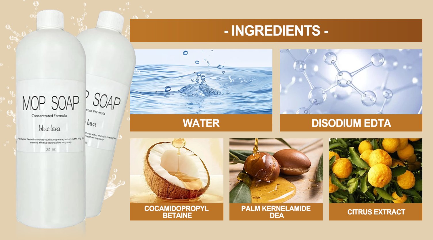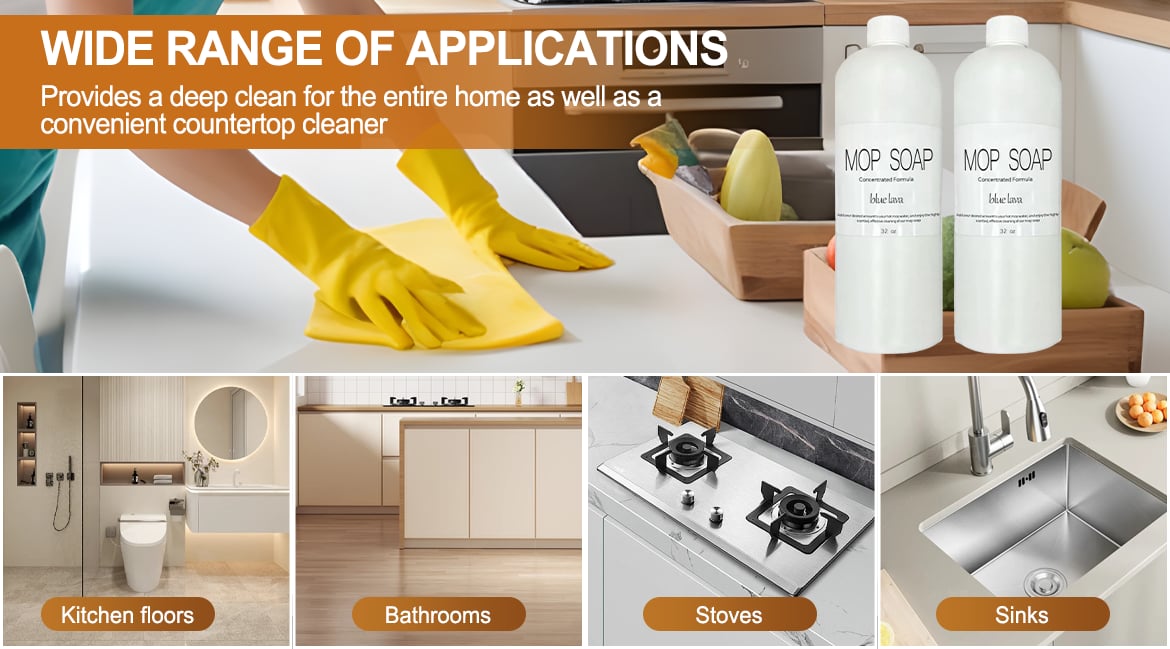 Our richly scented mop soap effectively removes dirt, grease and dust, leaving floors spotless and fresh.