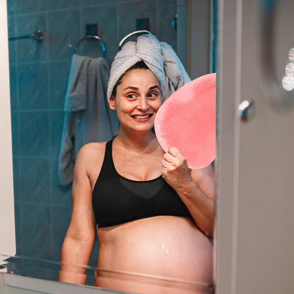 "By my third trimester, I couldn't see my feet, let alone wash them properly. My husband had to help me, which was embarrassing for both of us. This pad has been such a blessing. I can stand securely and clean my feet independently again. The massage feature is incredible for my swollen ankles too!" — Emma S.