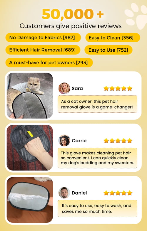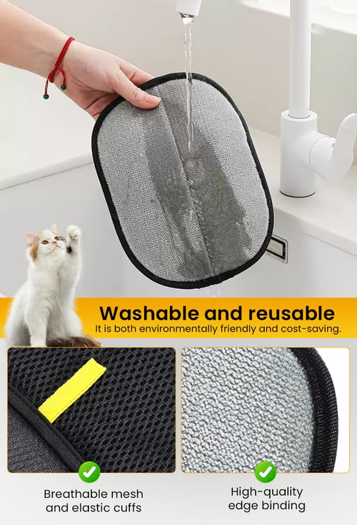 Between my 2 cats and Labrador, I was constantly battling pet hair. This glove lives on my hand now - I use it for quick daily grooming, bath time, even removing hair from furniture.