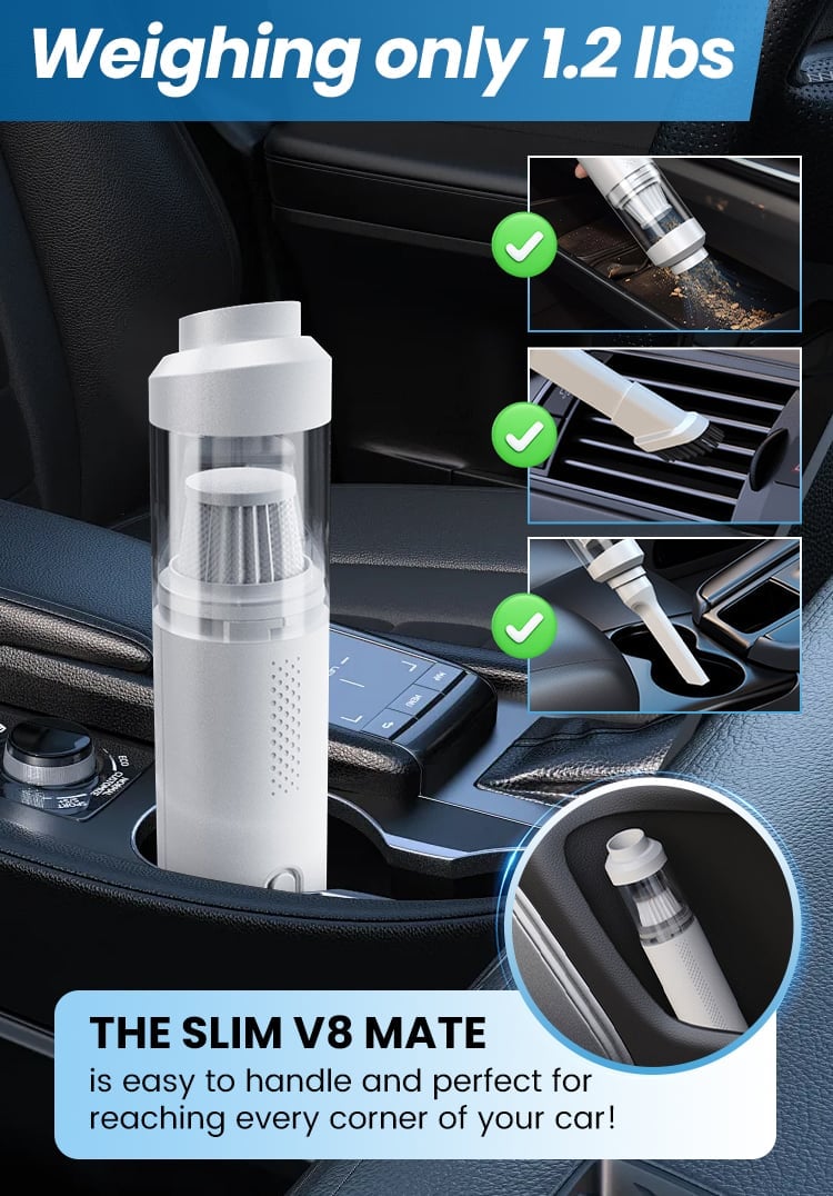 This vacuum is incredibly lightweight and easy to maneuver. Perfect for quick clean-ups in my car.